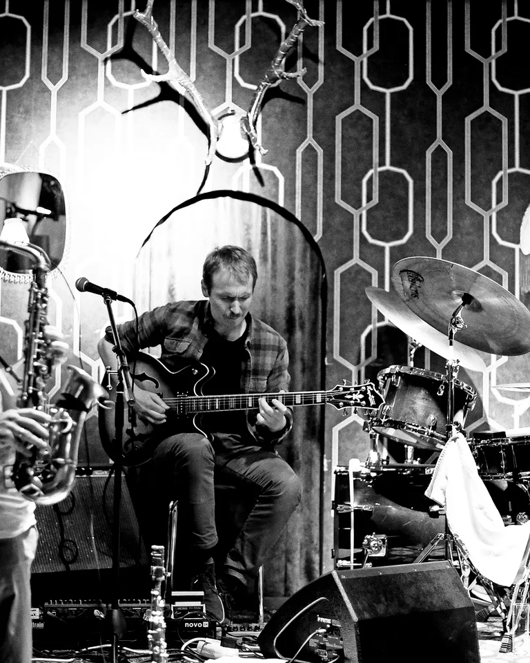 In den vergangenen Jahren haben der Altsaxofonist Johannes Ludwig und der Gitarrist Gero Schipmann schon des Öfteren zusammengearbeitet. Hinter dem Ensemblenamen The Human Element verbirgt sich das Duo der beiden 1988 geborenen Instrumentalisten mit der eigens entwickelten Musik und je nach Projekt erweiterter Besetzung. So haben The Human Element bereits ein Quintett-Album mit Musikern aus London veröffentlich – Schipmann hat dort eine Weile gelebt und studiert – und sind derzeit als Trio mit dem Schlagzeuger Alex Parzhuber aktiv. Schipmann ist aktuell vor allem auf der Baritongitarre zu hören, die eine längere Mensur hat und deshalb tiefer klingt als eine herkömmliche Gitarre. Ludwig wiederum experimentiert mit allerlei Werkzeug aus dem digitalen Baukasten, um die Klangfarbe seines Altsaxofons zu erweitern und zu verfremden. Der Sound dieses Trios ist oftmals rockig und rau, er besitzt aber auch die Dichte und Flächigkeit von Ambient-Musik und hat zudem das Trancehafte einer Minimal Music.