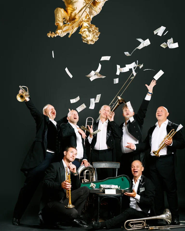 Mehr als dreißig Jahre lang schon kurven die sieben Kapazunder mit der größten Selbstverständlichkeit und ihren blitzenden Blasgeräten zwischen Johann Strauß und Frank Sinatra hin und her, zwischen Schostakowitsch und Prince oder auch leidenschaftlich gern von Schubert rüber zu ihren Wahlverwandten von Queen. Aber Strauß – den sowohl Brahms, Wagner und Verdi als auch die Handwerker und die Mädels aus der Vorstadt (und selbst Gershwin) glühend verehrten – er war der Urvater des nonchalanten Tändelns zwischen den Stühlen. Strauß produzierte als erster Hits am laufenden Meter. Er nahm sich einen Arrangeur, um schneller arbeiten zu können, und begriff, dass er mit seinen Brüdern zusammen seinen Sound weltweit reproduzieren konnte. Er war der Erste, der E und U unterlief und als Walzerkönig zum Massenphänomen wurde – süßer die Kassen nie klingelten.